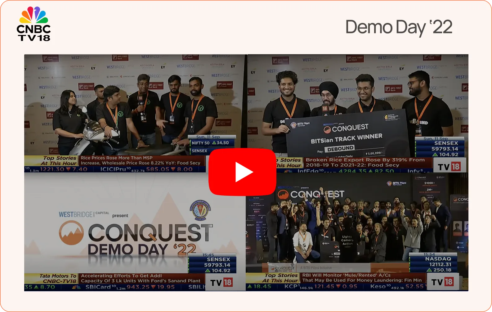 Conquest, BITS Pilani is Asia's largest student-run startup accelerator for early stage ventures. Founded in 2004, Conquest leverages an expanding network of industry leaders, corporations, VC firms and angel investors to work with India's most promising startups and fuel hundreds of zero-to-one journeys.